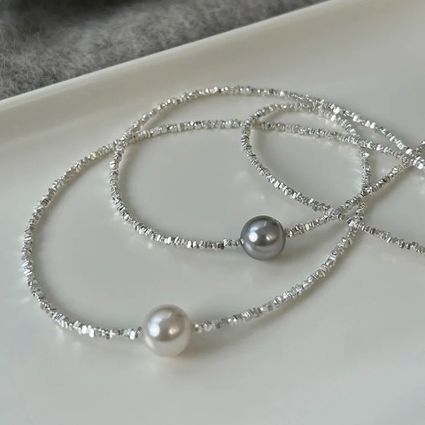 Collier ras du cou à chaîne épaisse clavicule scintillante de couleur argent populaire avec perle blanche et perle noire pour femme