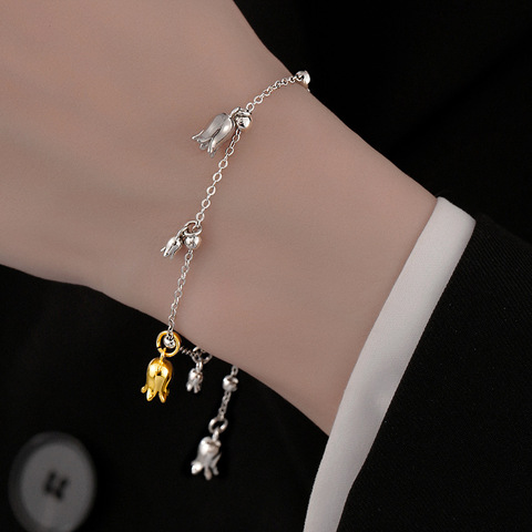 Cavigliera a tulipano in argento stile semplice stile Charm da donna cavigliera per donna regalo di compleanno gioielli squisiti