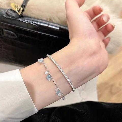 Bracciale di colore argento di moda, braccialetto di zirconi blu, per donna