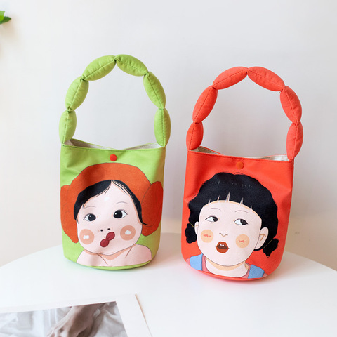 סיטונאי חמוד ילדה קריקטורה הדפסת תיק כותנה מילוי למעלה ידית תיק יד כיף Tote תיק לילדה נשים