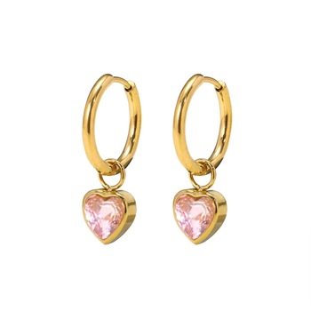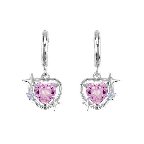 달콤한 스타일 쿨 미적 실버 도금 복숭아 핑크 지르콘 하트 워터 드롭 매달려 귀걸이