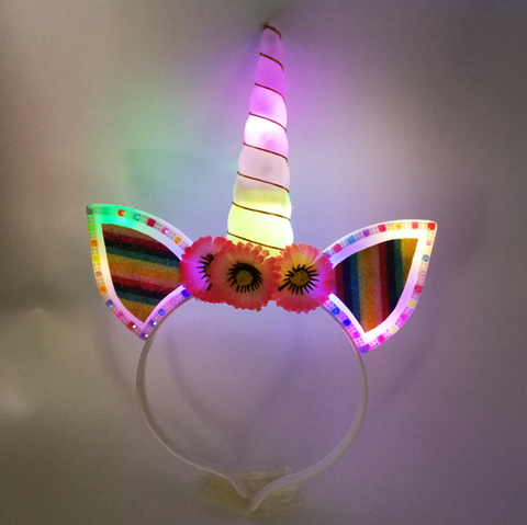 Meist verkaufte niedliche blinkende LED-Einhorn-Stirnband-Haarschmuck für Mädchen zu einem guten Preis