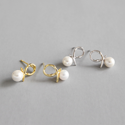 Boucles d'oreilles en argent sterling 925 pour femme, simple et de tempérament coréen, nœud d'amour avec perles