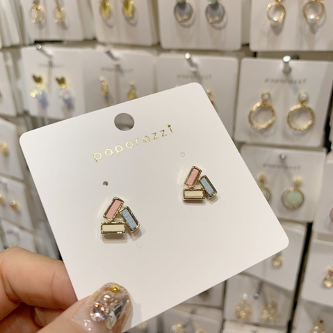 Boucles d'oreilles en argent pour femmes, en forme de triangle, simple et doux, contrasté de couleur, 925