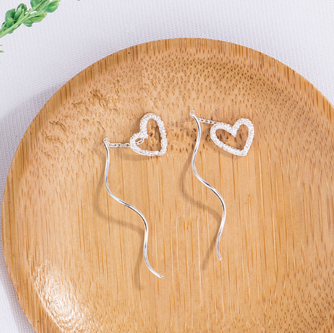 S925 argent frais et doux femmes coeur longue boucle d'oreille