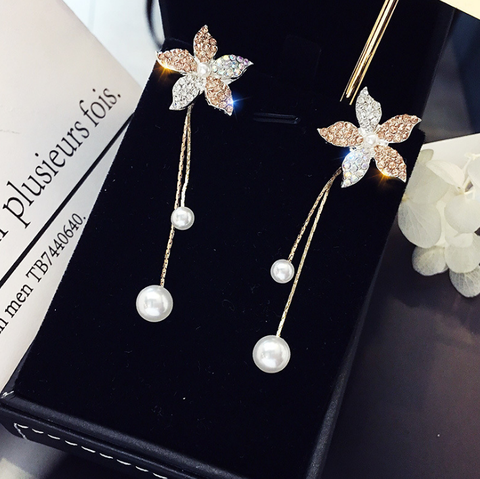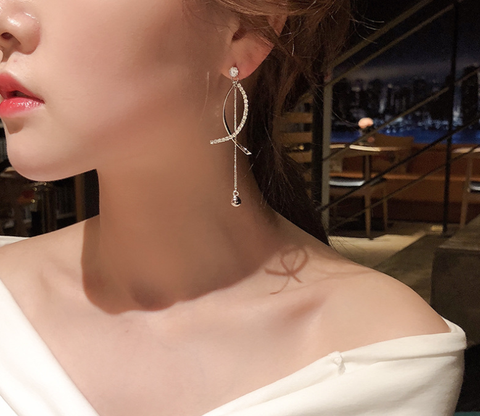 Boucles d'oreilles pendantes en strass argent pour femmes, bijou mode coréenne et tempérament unique, 925